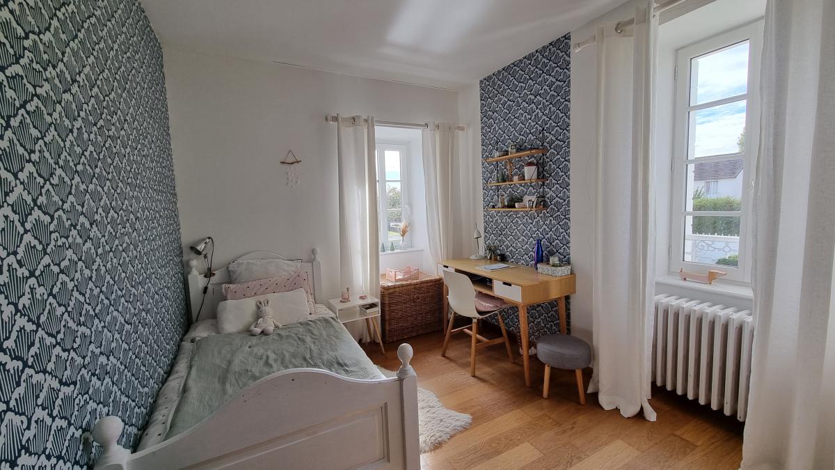 Au 1er étage : palier desservant quatre chambres, un bureau, une salle de bains, wc