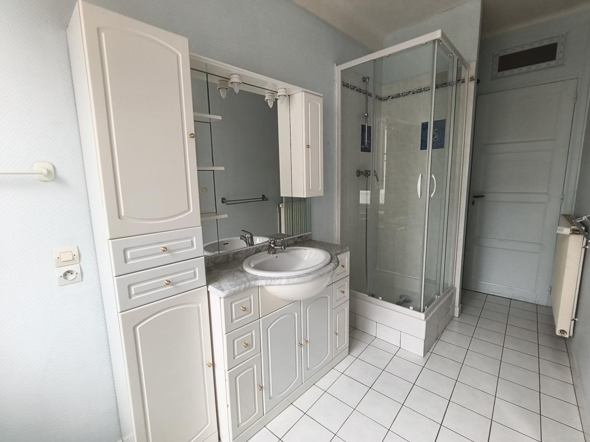 UN APPARTEMENT situé au PREMIER étage, comprenant : Entrée avec placard-penderie ; séjour ; deux chambres ; cuisine dans laquelle bloc-évier ; salle de bains comprenant une cabine de douche, meuble stratifié avec une vasque, grand miroir, arrivée d’eau, vidange machine et ballon eau chaude ; W.C.