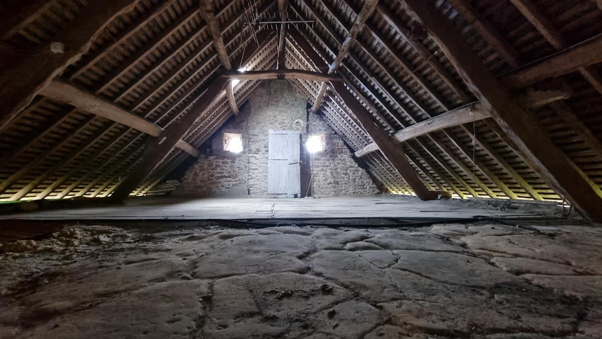 Escalier en pierre menant à l'étage : une grande chambre, un bureau.