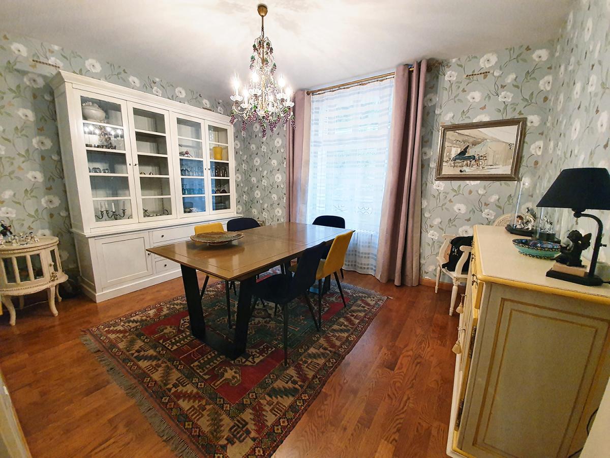 Maison en plein centre-ville (rue calme), avec garage, comprenant: Rez-de-chaussée : vestibule, salon, salle à manger, cuisine aménagée et équipée, wc, grande véranda (2006), bureau, cellier.Premier étage : couloir desservant trois chambres, salle de bains, wc, lingerie.Deuxième étage : deux chambres, dressing.Sur le terrain de 372 m²: salle de jeux chauffée et dépendances.Jardin arboré et terrasse au Sud.Equipement : Chauffage centrale au gaz de ville, assainissement public.